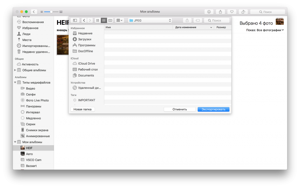 Как конвертировать фото .HEIC в JPG на Mac с помощью стандартной программы Фото
