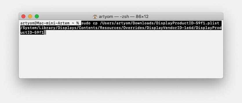 Если нужная папка (с вашим DisplayVendorID) существуют, пропускаем этот шаг. Если папки нет, создаём ее при помощи команды “sudo mkdir путь_который_указан_на_сайте“.