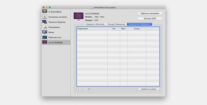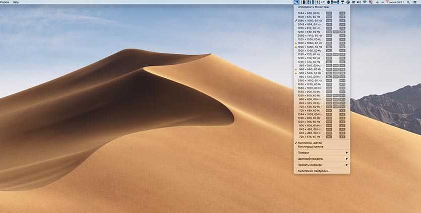 3. Запускаем приложение (на примере SwitchResX) и выбираем подходящее для монитора разрешение с пометкой HiDPI.