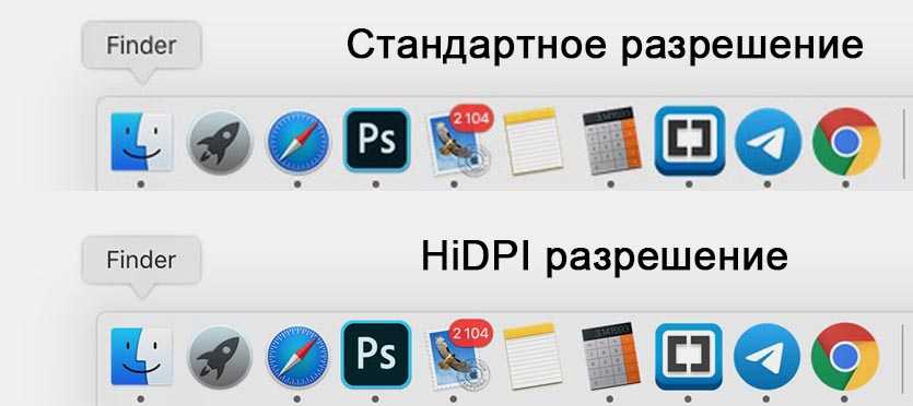 Оригинальные мониторы на компьютерах Apple работают в HiDPI режиме, по сути система удваивает разрешение, чтобы добиться четкости шрифтов и границ элементов. Даже на правильно подобранном внешнем мониторе картинка будет не такая четкая, как на оригинальной матрице MacBook или экране iMac.