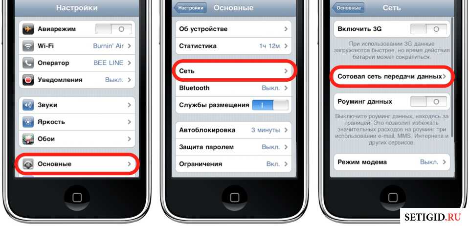 »; - В пункте «Сотовая сеть передача данных
