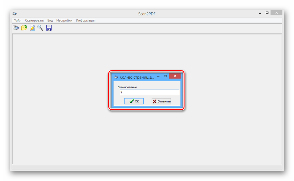 Укажите количество добавляемых страниц и выполните сканирование. Мы не будем заострять внимание на данном шаге, так как действия могут отличаться при использовании разных моделей устройств.
