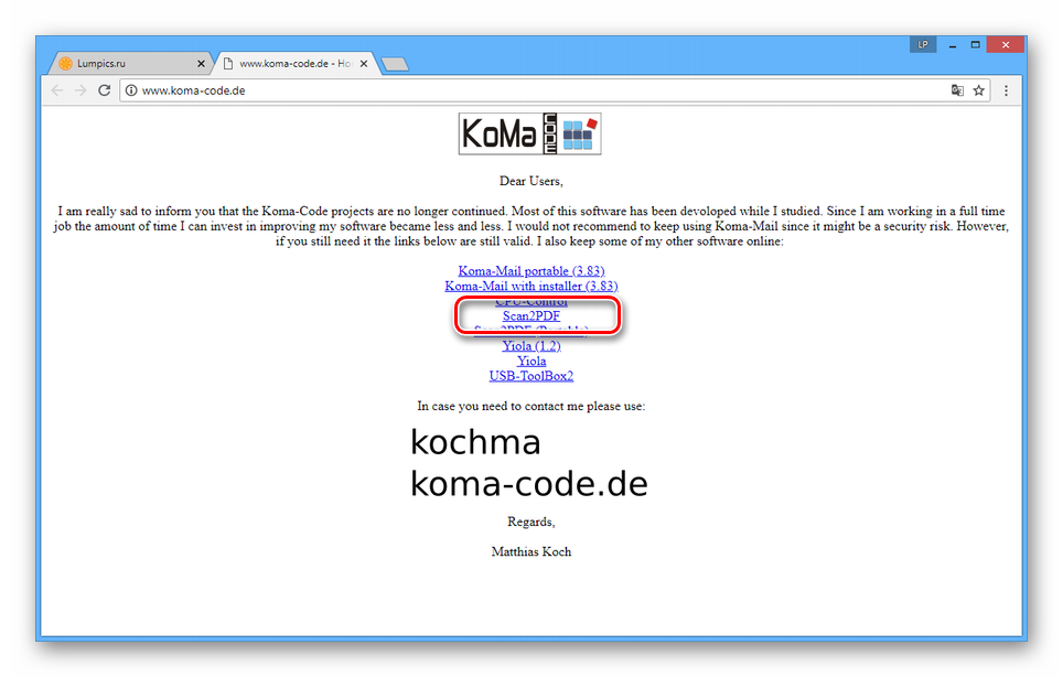 - Откройте страницу по представленной нами ссылке и выберите из списка пункт «Scan2PDF». Программу необходимо загрузить на компьютер и установить.
