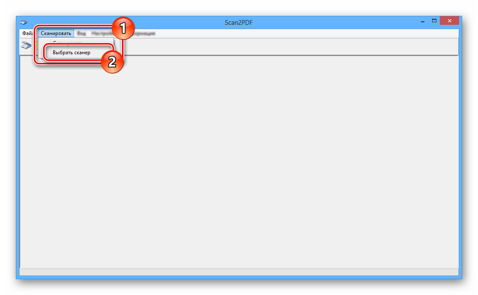Раскройте список «Сканировать» и перейдите к окну «Выбрать сканер».