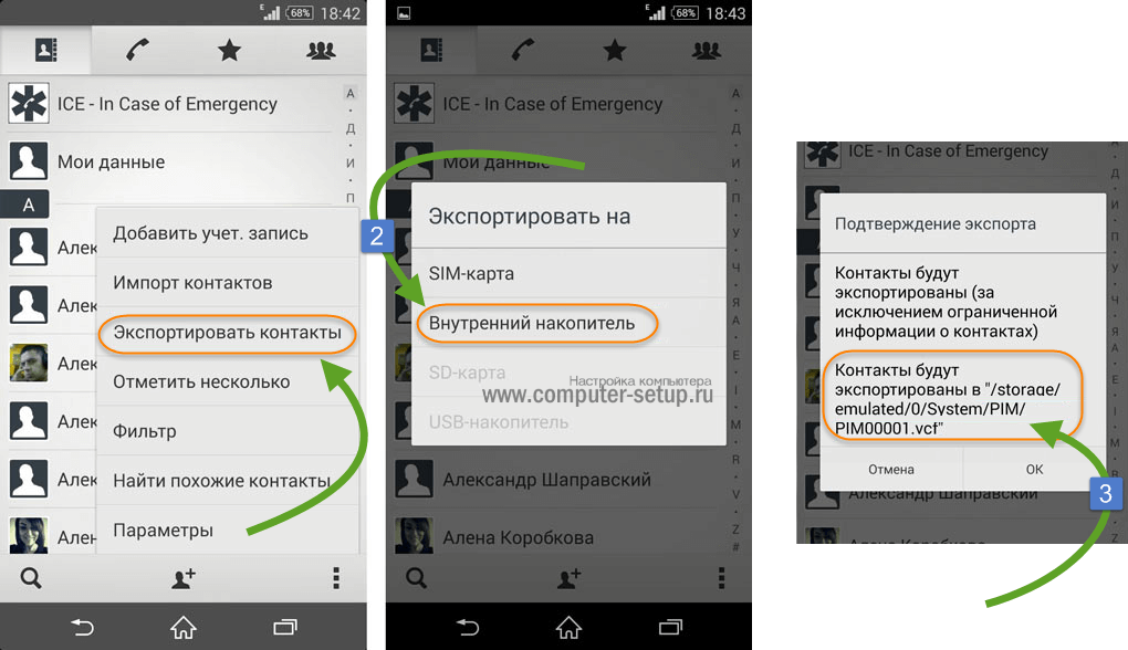 - Экспортировать содержимое телефонной книги в файл .VCF через приложение MyContactsBackup.