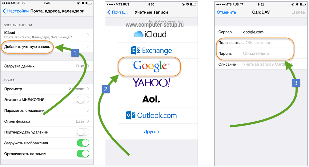 Синхронизация через Google аккаунт. В устройствах под управлением ОС Android для хранения резервных копий используется облачный сервис от Google. При этом пользователи iOS могут создать аккаунт в Google и синхронизировать его с некоторыми приложениями Apple. Для этого требуется открыть настройки на Айфоне и выполнить следующие действия: