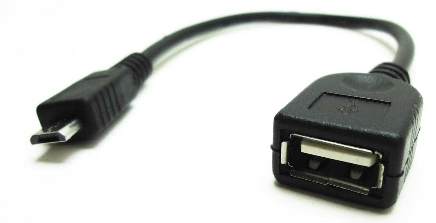 Он напоминает обычный кабель для зарядки телефона. С одной стороны у него всё тот же Micro USB (он подключается к телефону), но с другой — не штекер USB, а сам порт (как на «ноуте» или стационарном ПК). К нему может подключаться всё что угодно — не только обычная флешка. Например, клавиатура, джойстик, мышь, фотоаппарат и прочее.