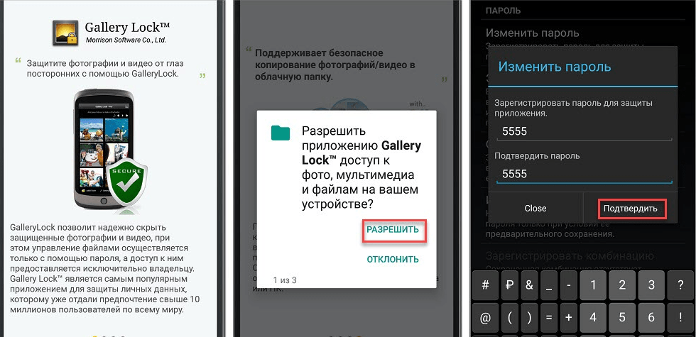 Одной из утилит, которая нужна лишь для установки пароля на галерею, является Gallery Lock. после ее загрузки на телефон, нужно проделать следующее: