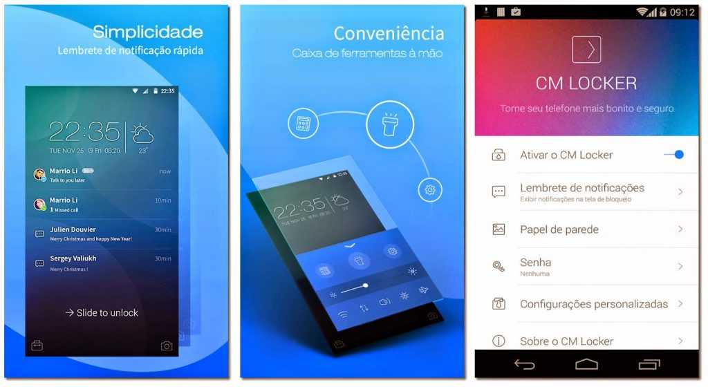 Еще одно хорошее и популярное дополнение для защиты личных данных – CM Locker. Он не устует предыдущему варианту по функциональным возможностям, также имеет русский интерфейс. Главное достоинство данной утилиты – в случае, если злоумышленник будет пытаться подобрать графический ключ или комбинацию цифр, его фотография будет прислана по адресу электронной почты, прикрепленной к программе.