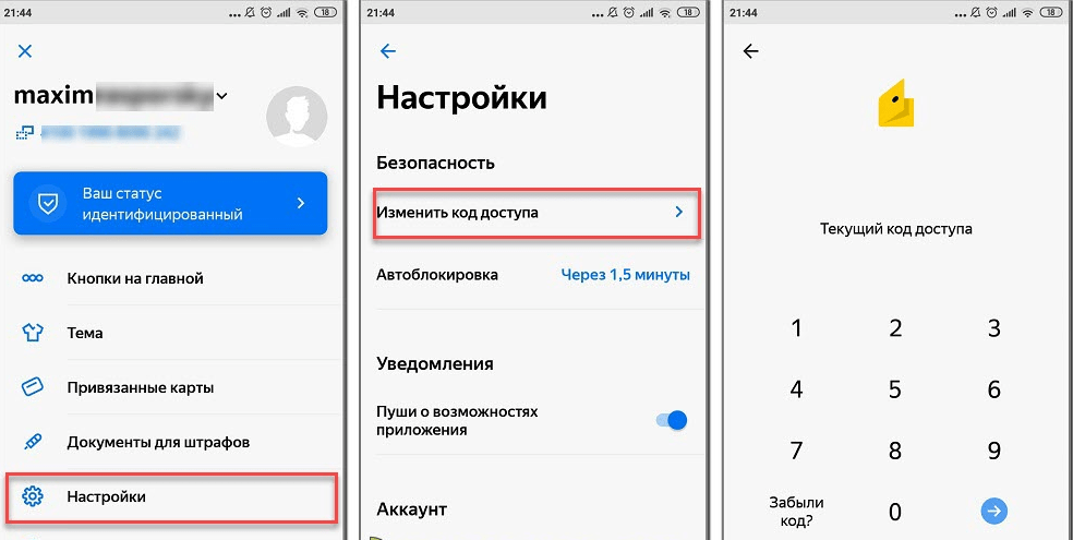 - перейти в параметры и нажать на “Изменить пароль”, ввести новый шифр, нажать “ОК”.