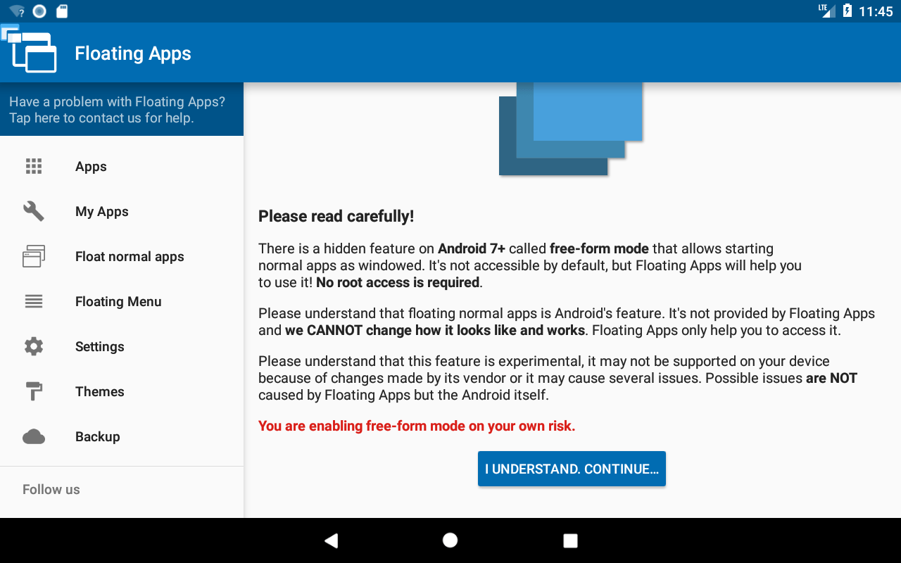 Floating Apps Free доступна в том числе на русском языке. Поэтому вы легко сможете разобраться с работой приложения даже в том случае, когда впервые пытаетесь активировать многооконный режим.