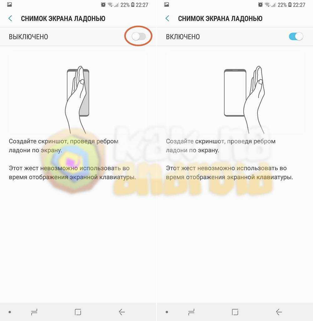 Еще один из способов создания скриншотов на смартфонах Самсунг – с помощью ладони. Перед использованием его необходимо активировать (если он, конечно, присутствует в прошивке вашего смартфона).