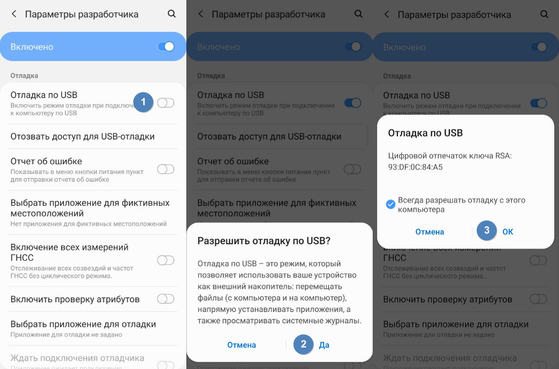 - В разделе «Отладка» активировать ползунок «Отладка по USB».
