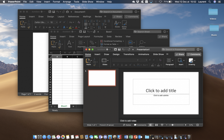 Зато после пары минут рутинной ручной перенастройки можно наслаждаться отличной тёмной темой macOS и функциональным цветным оформлением приложений пакета Office одновременно.