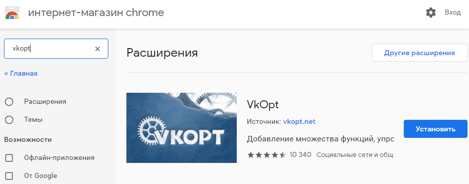 До недавнего времени для восстановления удаленных бесед юзеры ВК использовали расширение VkOpt, которое поддерживают многие браузеры.