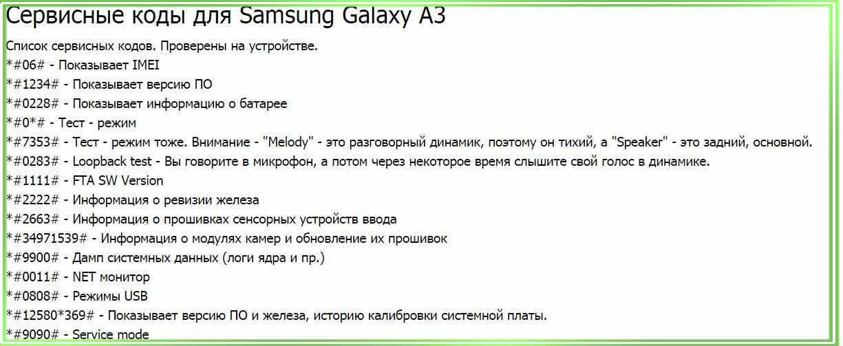 * # 06 # — показать IMEI.* # 0 * # — показать на новых телефонах, как Samsung Galaxy S III сервисное меню.