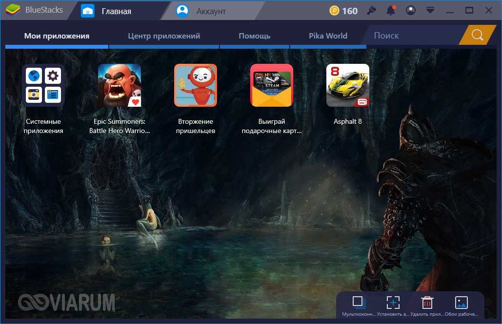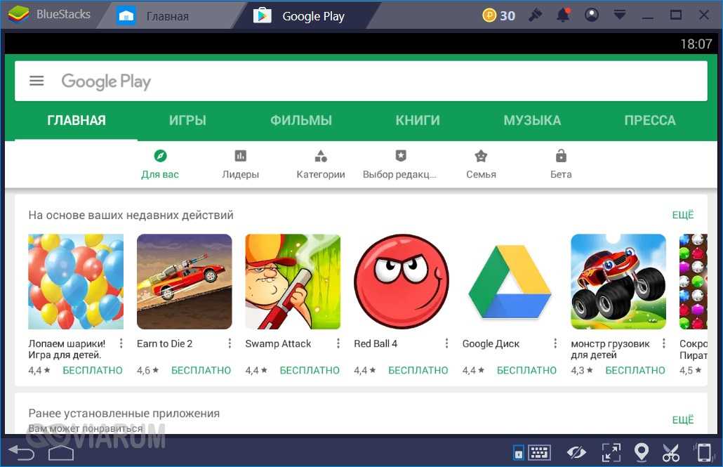 Еще один эмулятор Андроид для Windows – BlueStacks App Player – ориентирован, прежде всего, на геймеров, на что недвусмысленно намекает интерфейс программы. После запуска приложения (по состоянию на апрель 2018 года доступна третья версия) открывается главный экран с несколькими уже установленными играми.