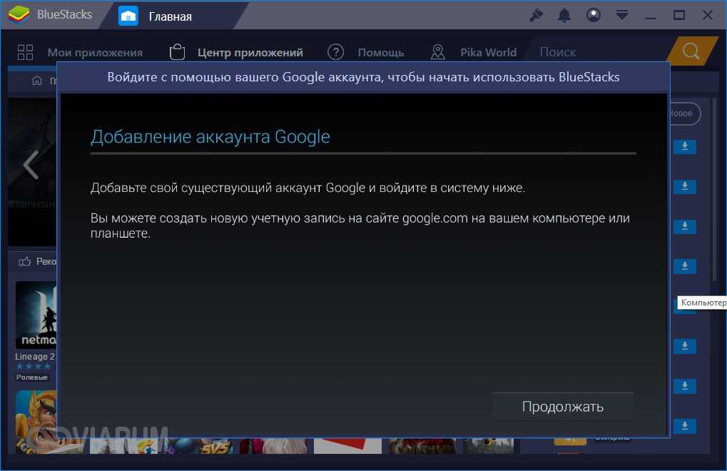 Программа BlueStacks- эмулятор Андроид для ПК, который обновляется по сей день, сейчас уже можно загрузить 4 адаптивную версию для Windows XP, 7, 8, 10, MacOS. Последняя версия утилиты поддерживает игры версии ОС Android Nougat. Войти в эмулятор после установки нельзя, пока пользователь не авторизуется через Гугл аккаунт, можно через свой постоянный или новый.