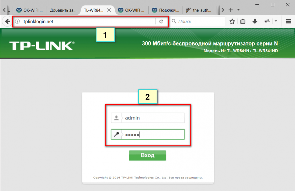 - Верхний ряд: вписываем старый логин и пароль – admin.