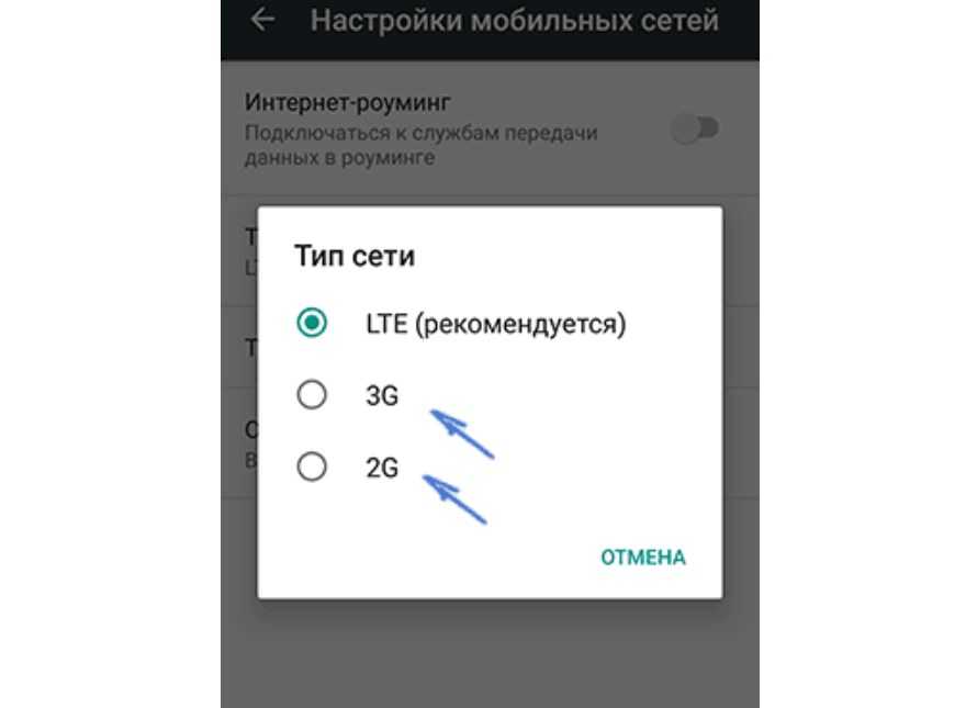 - Переключить сети на 2G с 3G.