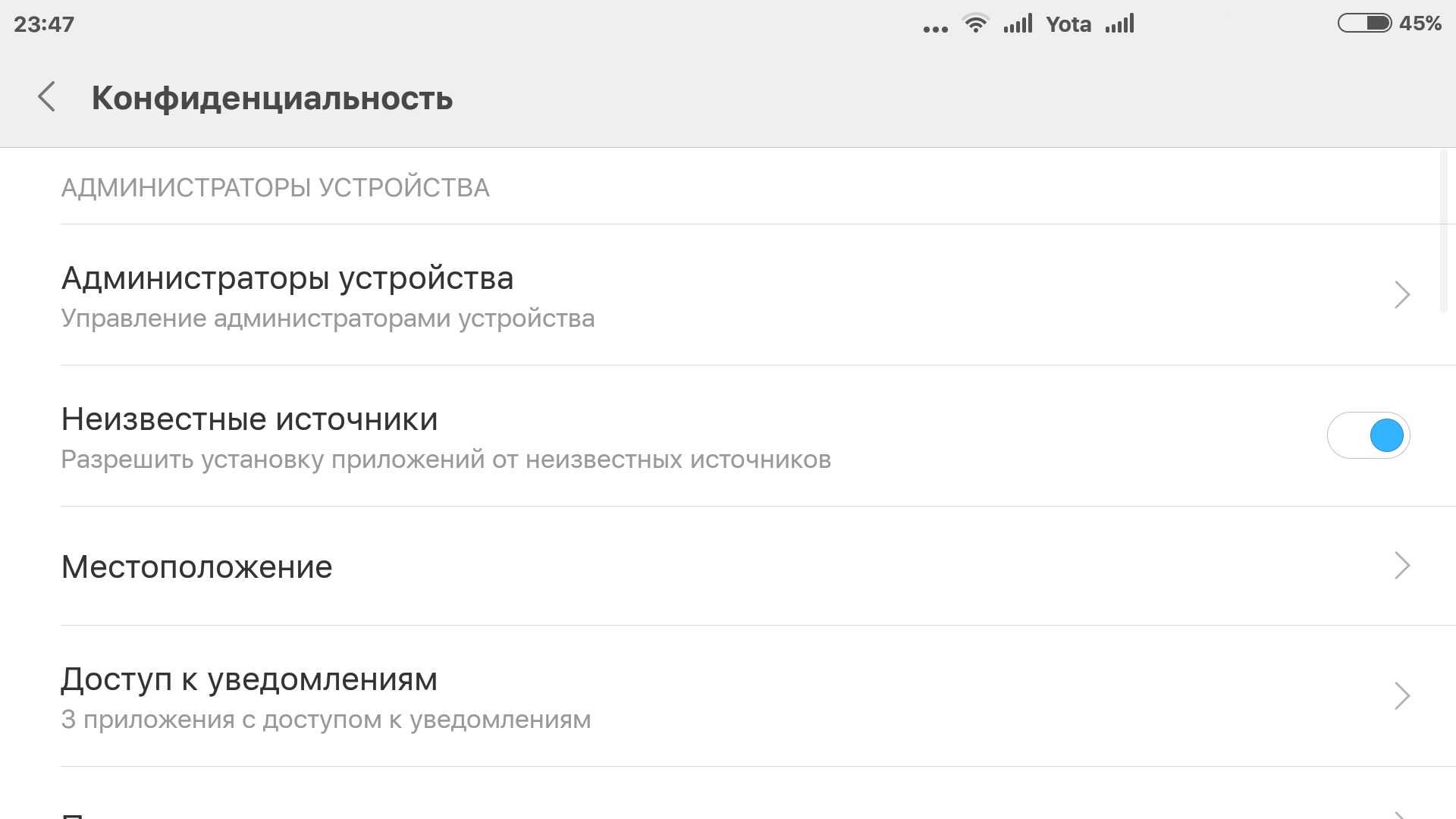 Поставьте галочку рядом с пунктом «Неизвестные источники».