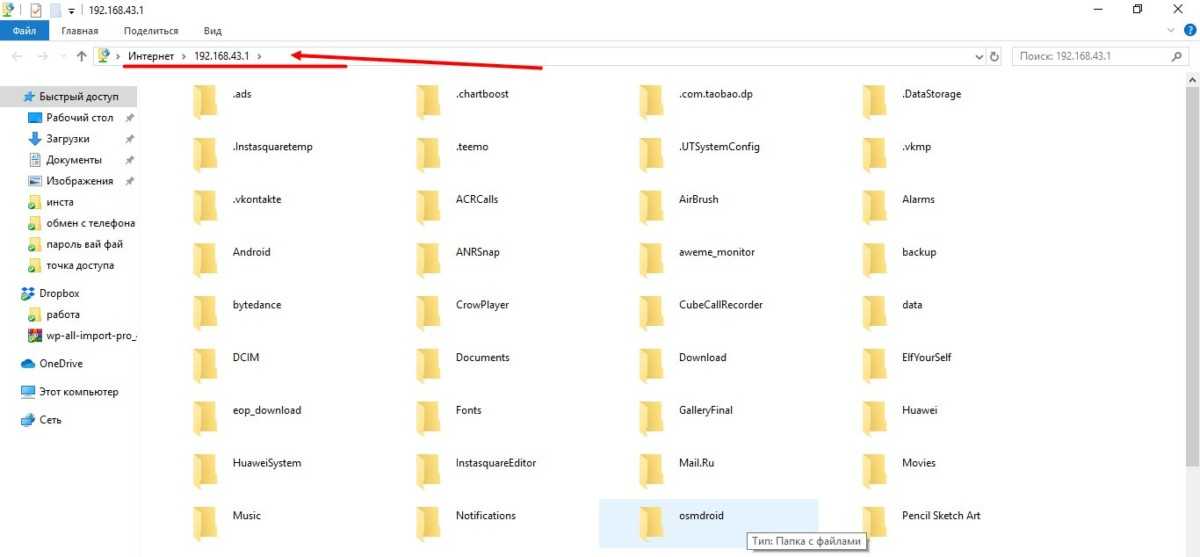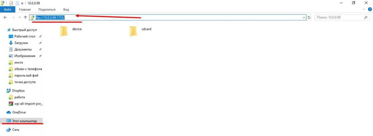 На экране появится IP-адрес, который нужно ввести в поисковой строке какого-либо браузера или в проводнике Windows (Мой компьютер).