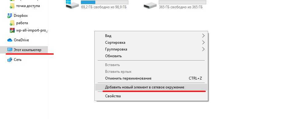 далее переходим в «Мой компьютер» и на пустое место кликам правой кнопкой мыши и на «Добавить новый элемент в сетевое окружение»;