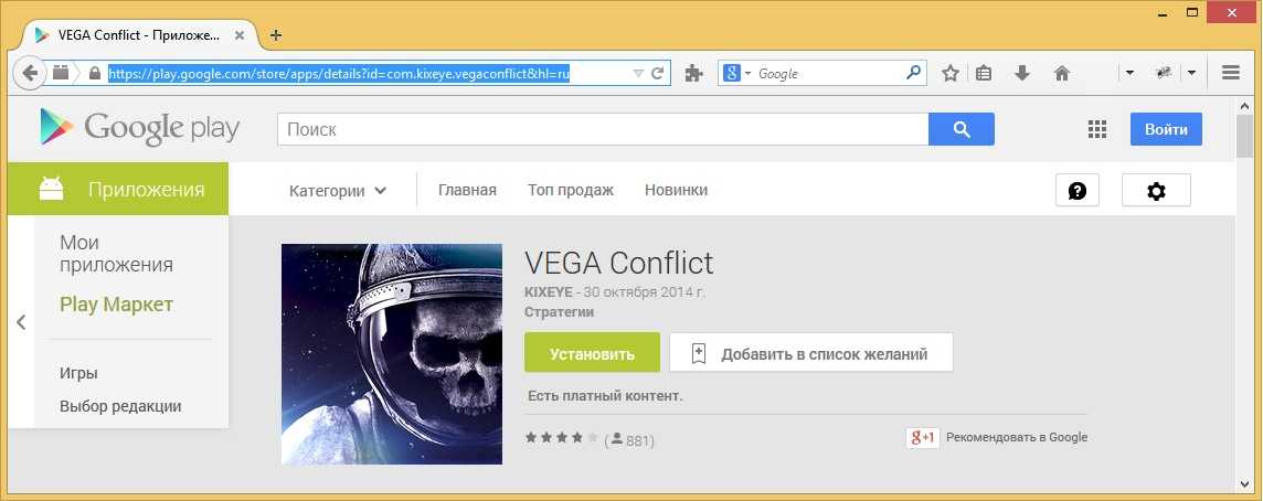 - Найдите нужное приложение в Google Play и скопируйте адрес страницы или имя apk (ID приложения).