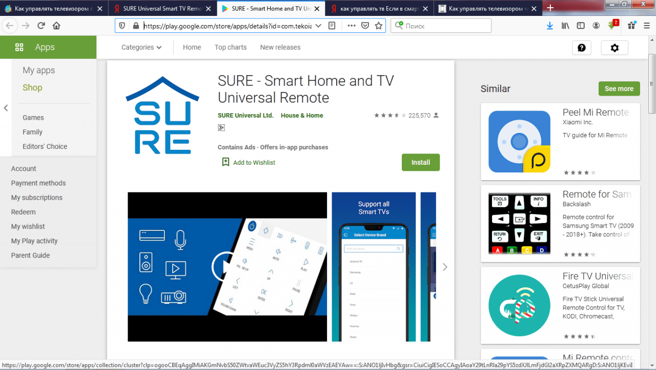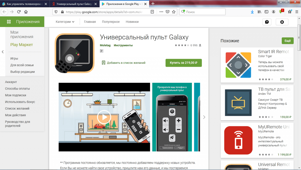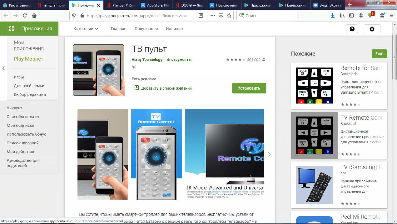 Данная программа появляется одно из первых, если в маркете приложений пользователь введёт дистанционный пульт для телевизора.
