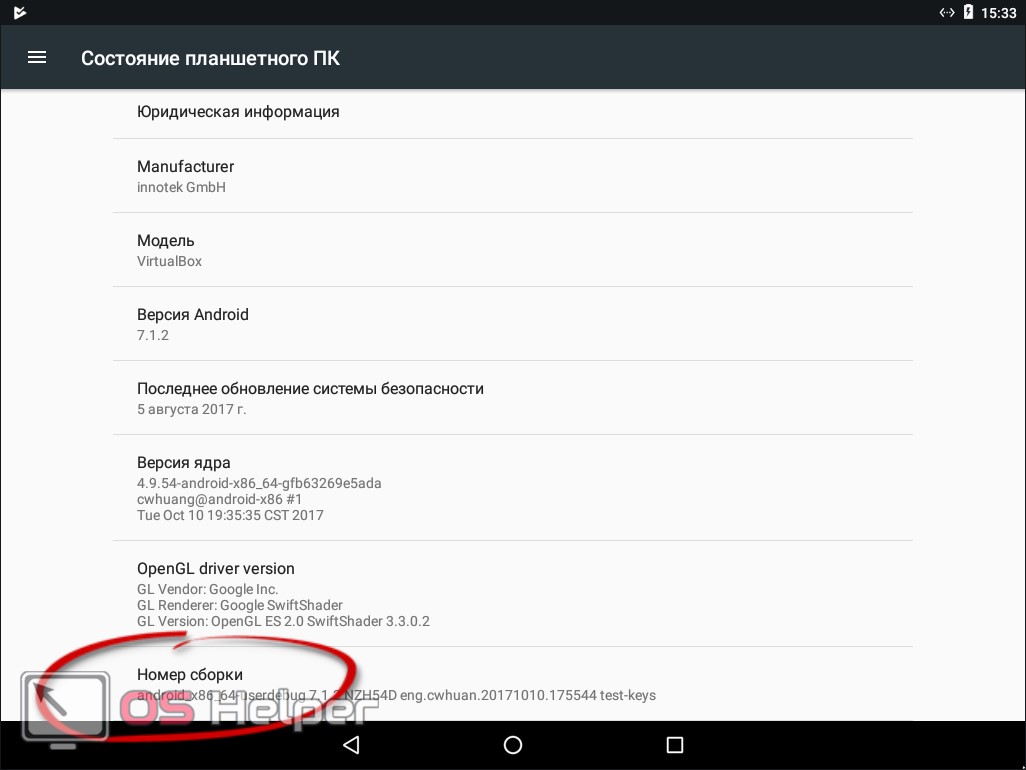 - Найти «Номер сборки» или «Версия ядра» и 7 раз по ним тапнуть.