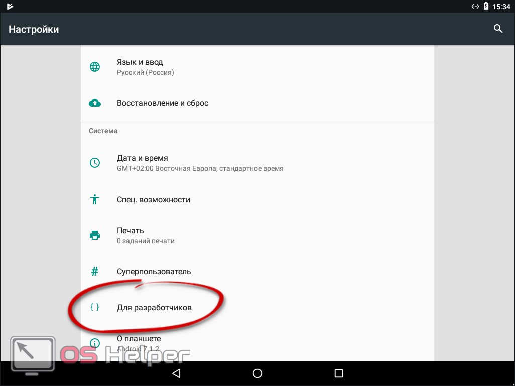 В результате проделанных манипуляций в меню настроек появится новая категория – «Для разработчиков».