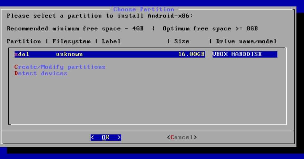Выбрав последний пункт меню при загрузке с флешки (Install Android x86 to hard disk), вы можете установить Android на свой компьютер в качестве основной ОС или дополнительной системы.