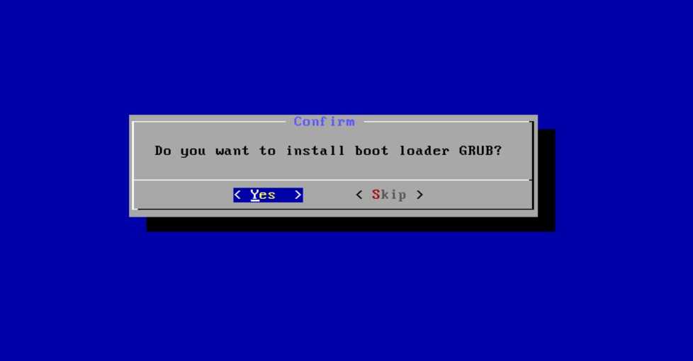 . По окончании процесса форматирования появится окно с предложением установить загрузчик GRUB. Выбираем Yes
