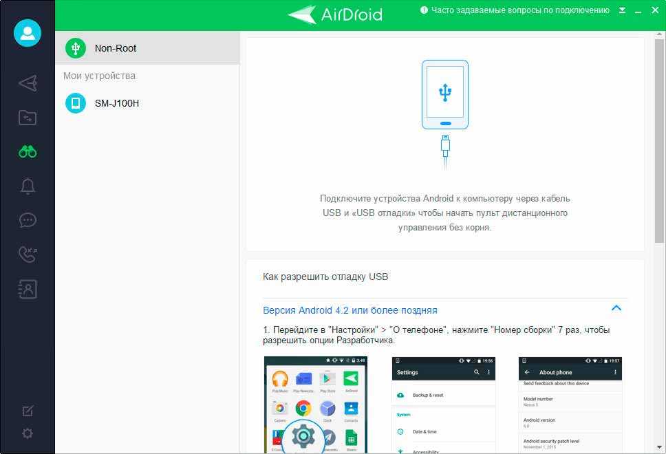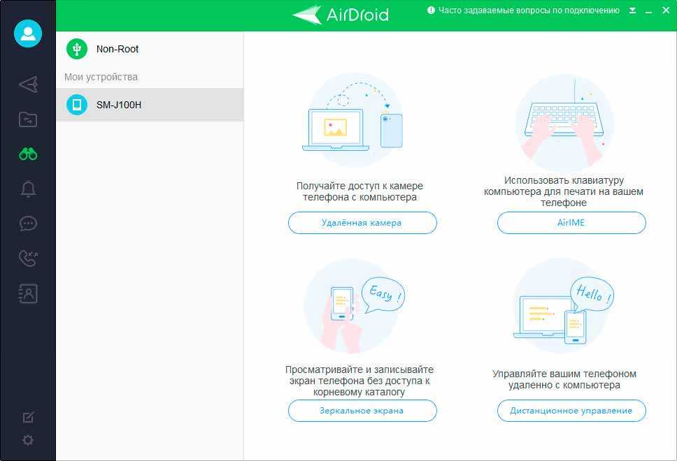 - Возможность не только видеть экран смартфона, но и управлять им с ПК