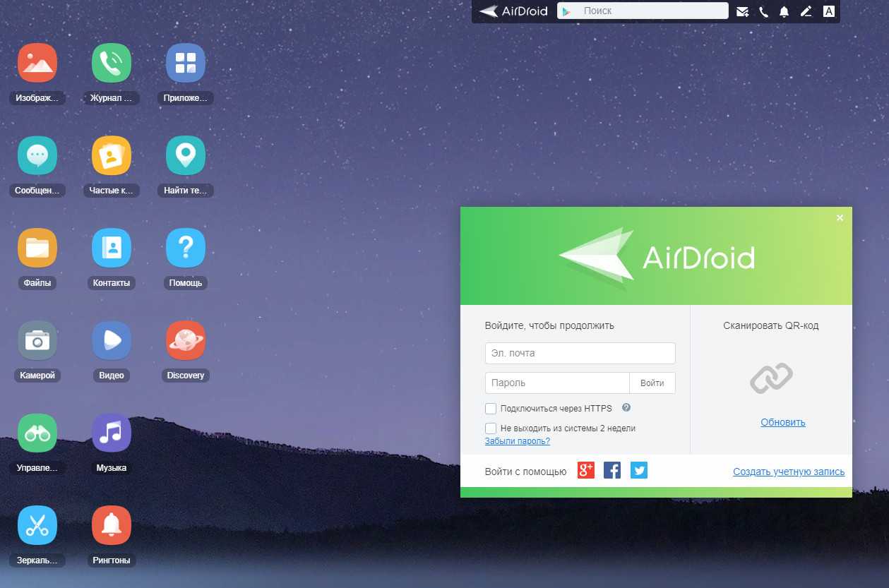 В этом случае устанавливать на компьютер десктопный клиент необязательно. Установка ПО проходит в пару кликов, что на ПК, что на смартфоне, но начать им пользоваться Вы сможете только после регистрации на сайте разработчика airdroid.com.