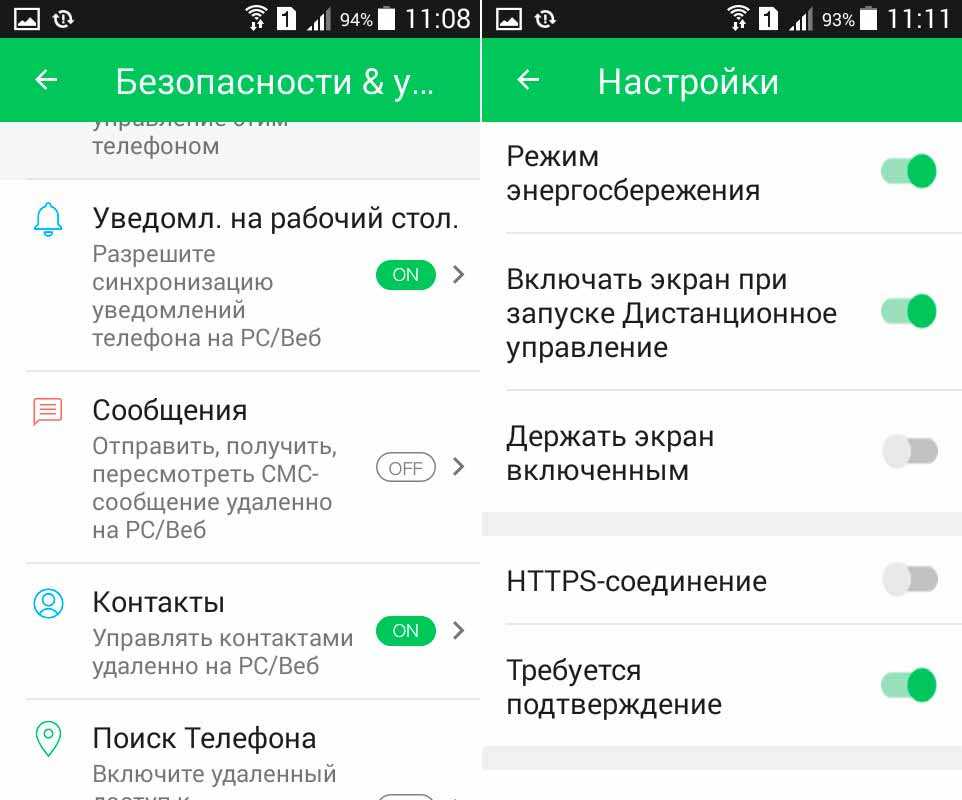 Большая часть функций доступа по умолчанию отключена, включите их, если хотите ими пользоваться. Для некоторых из них, например, функции «Дистанционное управление» Вам могут понадобится права root, а для функции поиска потерянного телефона — включение геолокации.