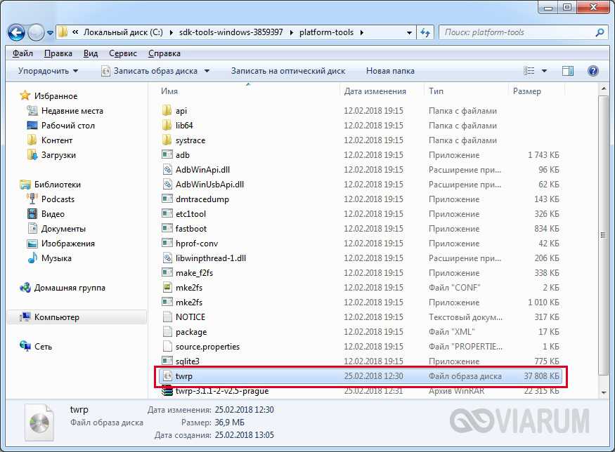 После скачивания для удобства переименовываем файл в «twrp.img».