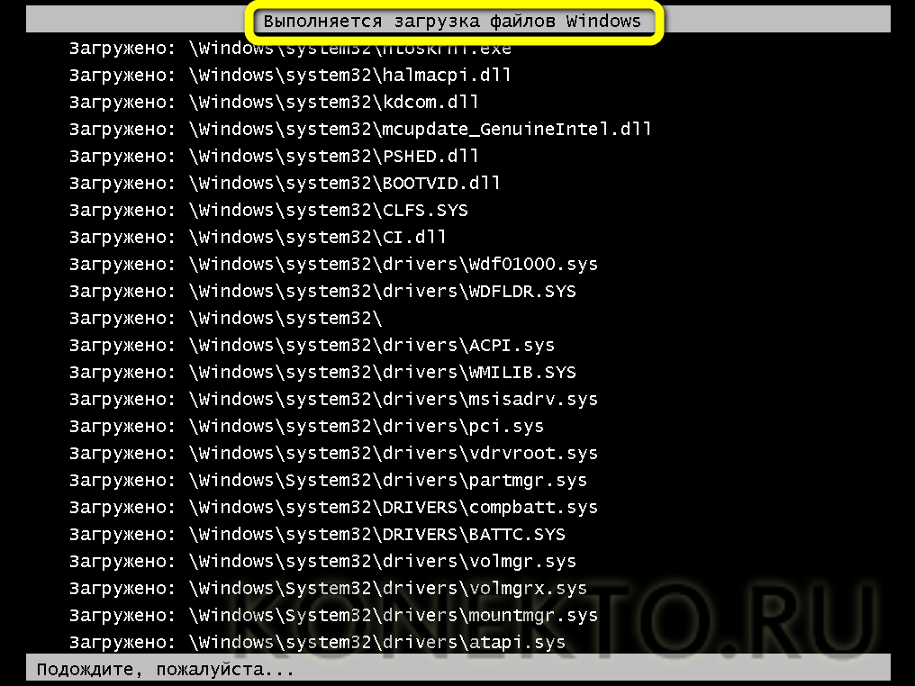 - Информация об ОС – на загрузочном экране отобразятся названия запускаемых драйверов.