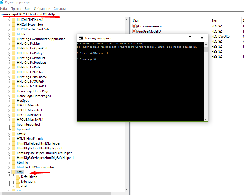 Переходим в раздел HKEY_CLASSES_ROOT\http\shell\open\command