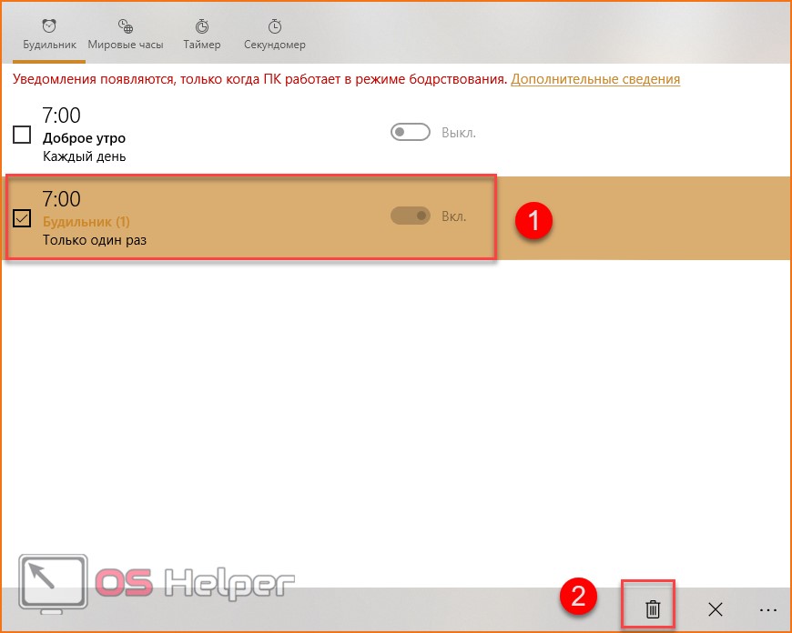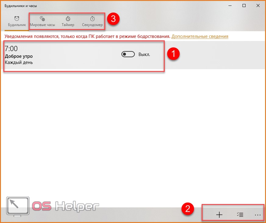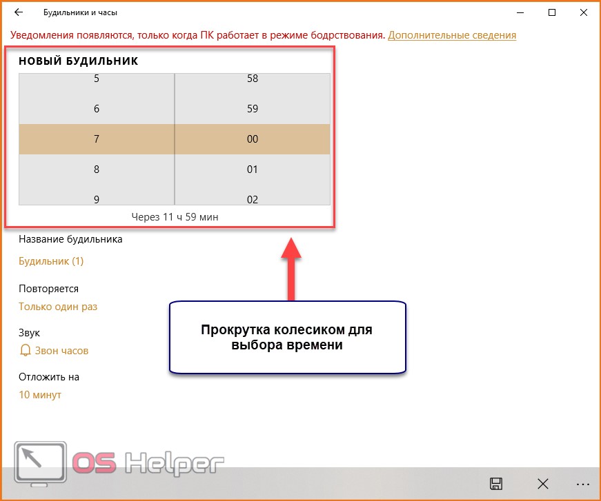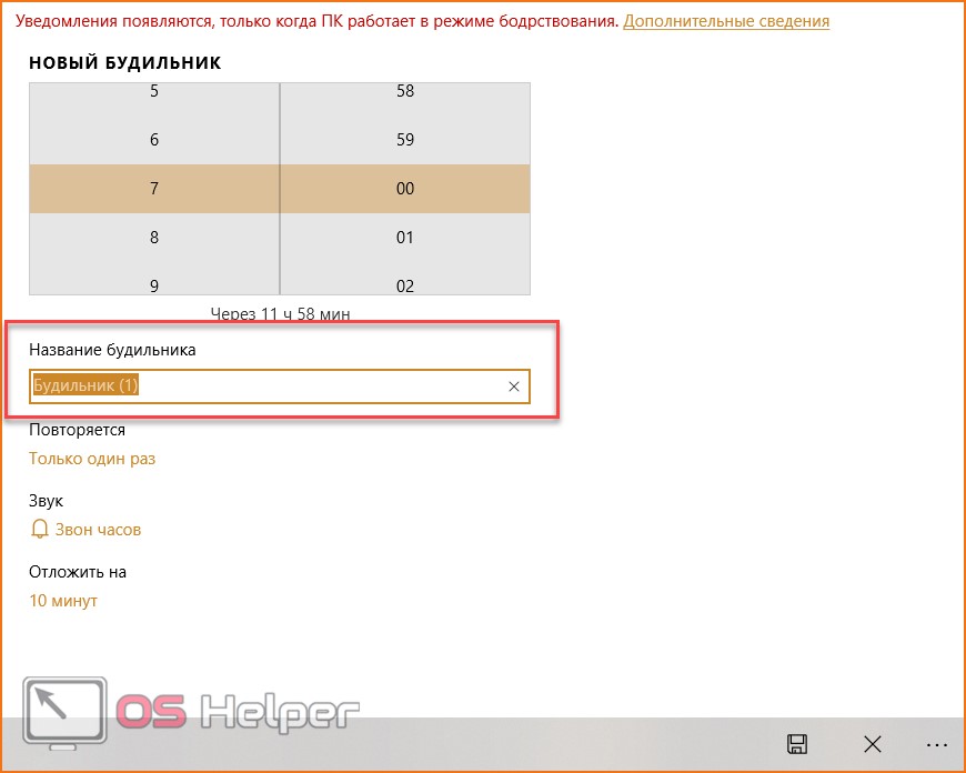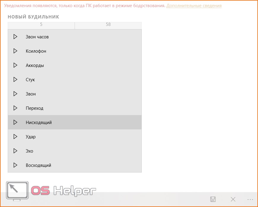 Во-первых, «Будильник и часы» не работает в спящем режиме. Вы можете получать уведомления от программы только при включенном компьютере. Во-вторых, настройки оповещения весьма скудные – нет выбора собственной мелодии, красивого уведомления и так далее. При звонке вы увидите на экране небольшое уведомление и услышите один из стандартных звуков.