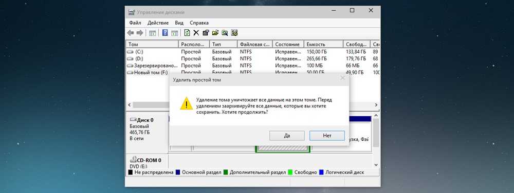 Шаг 2. Удаление тома и раздела для объединения с другим разделом в Windows 10