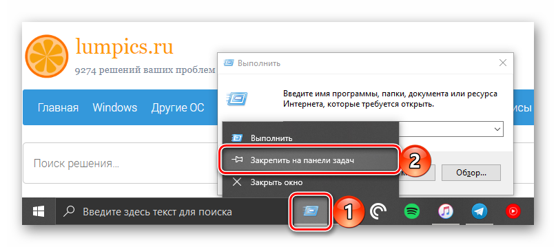 Если по каким-то причинам вы не считаете ни один из рассмотренных выше способов запуска «Выполнить» достаточно быстрым и удобным, но при этом необходимость в частом использовании оснастки имеется, можно и нужно закрепить ее на самом заметном месте. Таковых в Windows 10 как минимум три, и далее мы расскажем, как действовать в случае с каждым из них.