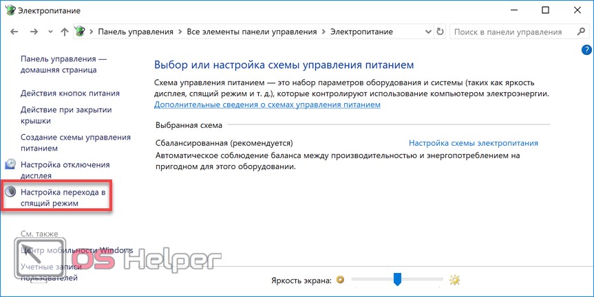 - Записав заданные параметры, система вернет нас на главную страницу управления питанием. Чтобы окончательно запретить переход в спящий режим, откройте последний пункт меню в зоне быстрого перехода.