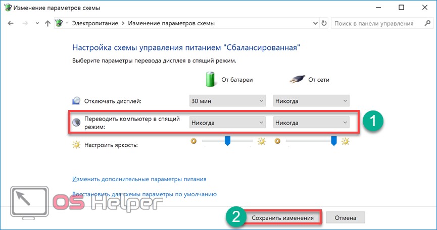 - Выставляем переключатели в положение, запрещающие уход в режим сна, и сохраняем последние совершенные изменения.