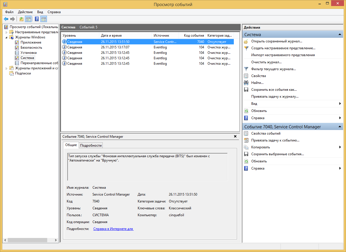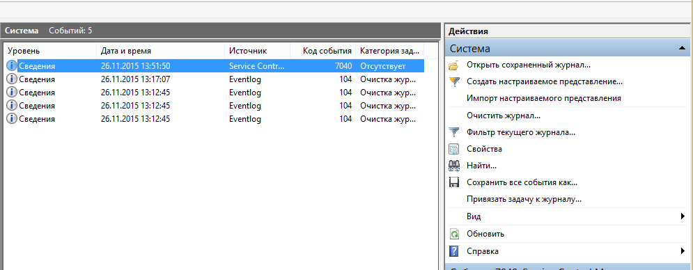 В итоге вы получите список логов журнала Система