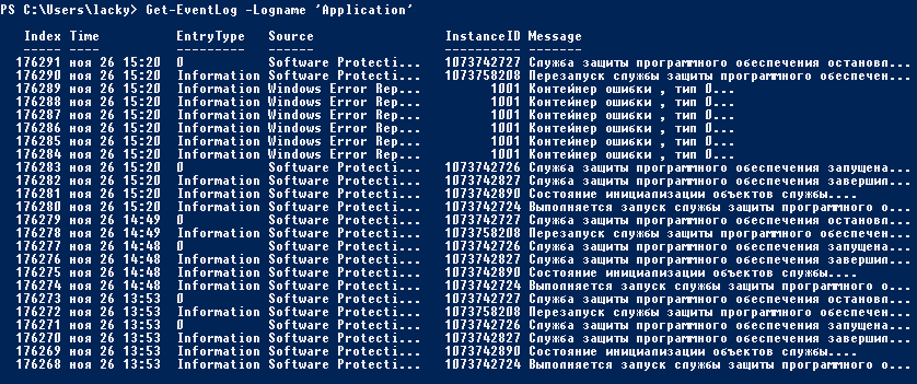 Посмотреть логи windows PowerShell