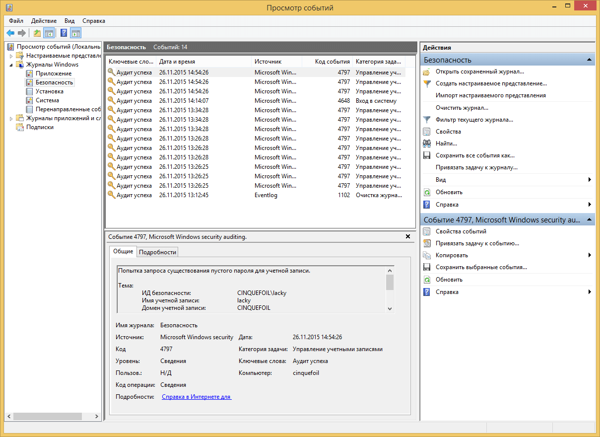Журналы событий в Windows 7