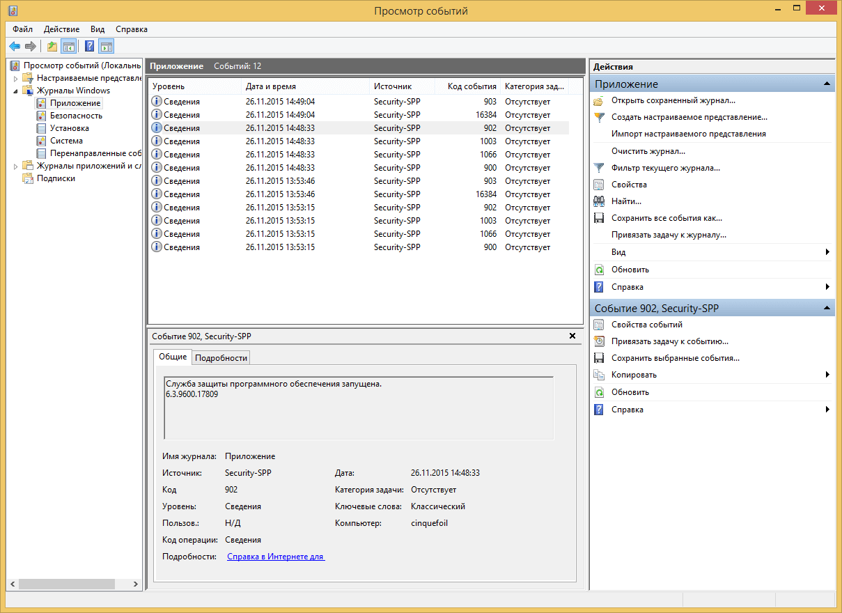 - Имя журнала — имя файла журнала, куда была сохранена информация о событии.