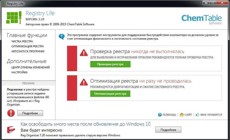 Итак, для лечения реестра будем использовать программу Registry Life.