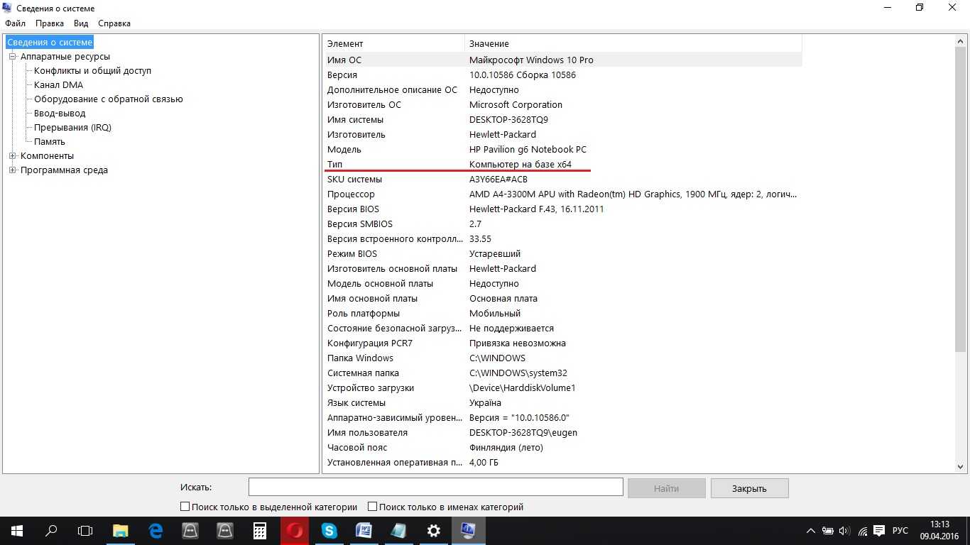 Выяснить, поддерживает ли ваш компьютер 64-битную Windows 10 можно также еще одним способом: используя Поиск, найдите утилиту «Сведения о системе». В открывшемся окне найдите пункт «Тип». Если в этом пункте указано: «компьютер на базе x64», можете смело переходить к следующему шагу.